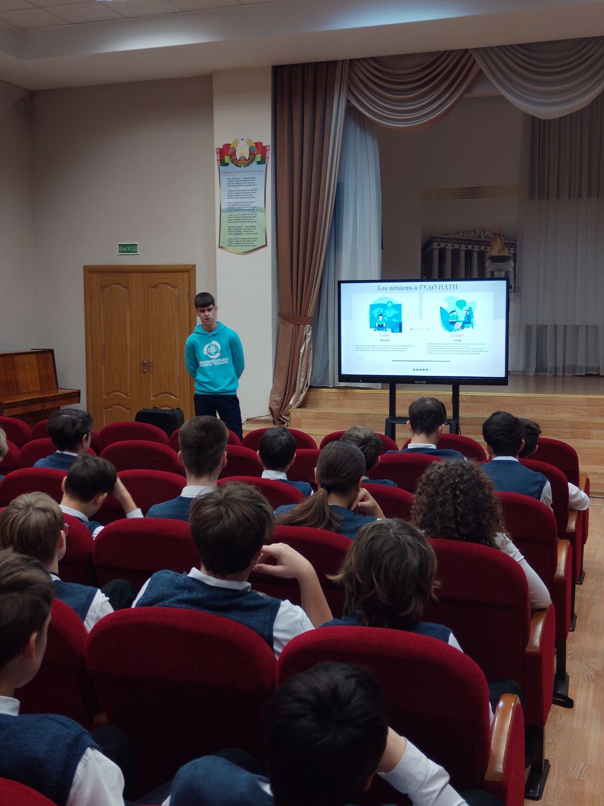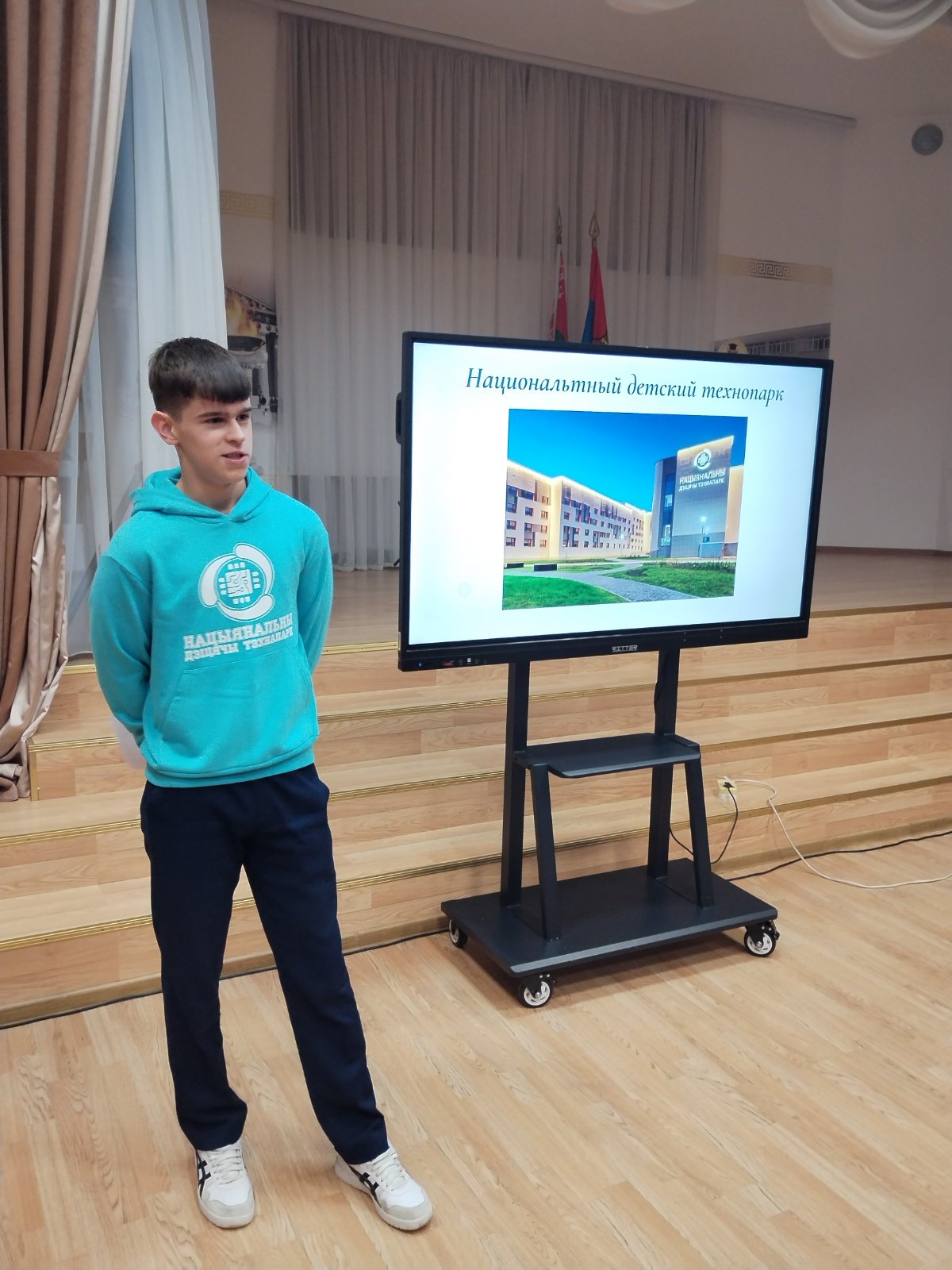 21 ноября в гимназии состоялась беседа с учащимися 8, 9 классов о Национальном детском технопарке во время которой Игнатович Никита, учащийся 11 класса, рассказал об условиях отбора, обучении и льготах для выпускников Национального детского технопарка.