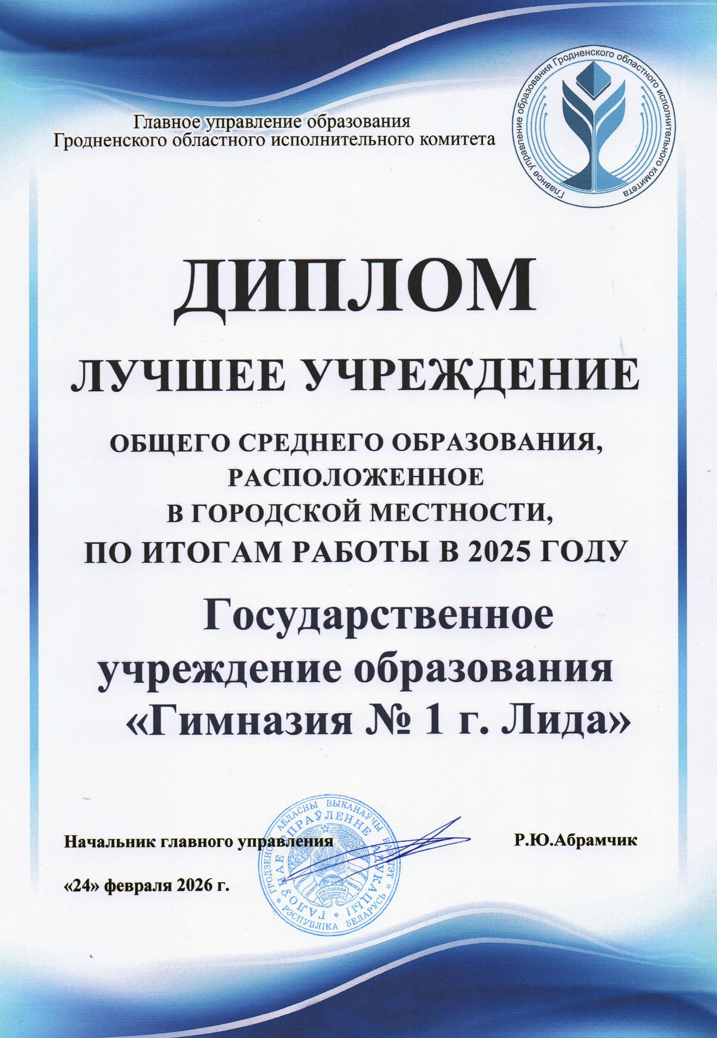 Гимназия №1 г. Лида — лучшее учреждение образования Гродненской области среди учреждений образования, расположенных в городской местности!