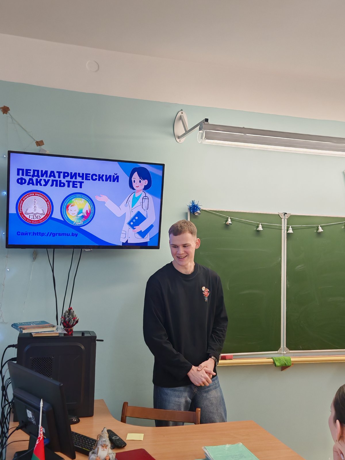 Встреча со студентом Военно-медицинского института Белорусского государственного медицинского университета Степулем Ярославом, выпускником гимназии. Сочетаемость военного и медицинского дела для многих присутствующих была открытием, что повлекло интерес и внесение в список приоритетных специальностей.